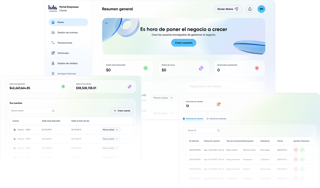 Lulo bank S.A es un establecimiento bancario vigilado por la Superintendencia Financiera de Colombia. La Lulo App y el Portal Lulo Empresas son propiedad exclusiva de Lulo bank S.A. A través de la Lulo App, el usuario podrá acceder a los contenidos, productos y/o servicios que ofrece Lulo bank S.A. o sus aliados, como Lulo X S.A.S. Lulo bank S.A. no es el proveedor de los bienes y servicios ofrecidos por sus aliados y, por tanto, no será responsable por la idoneidad, funcionamiento, precio o materialización de los riesgos inherentes a las operaciones que realices con sus aliados.